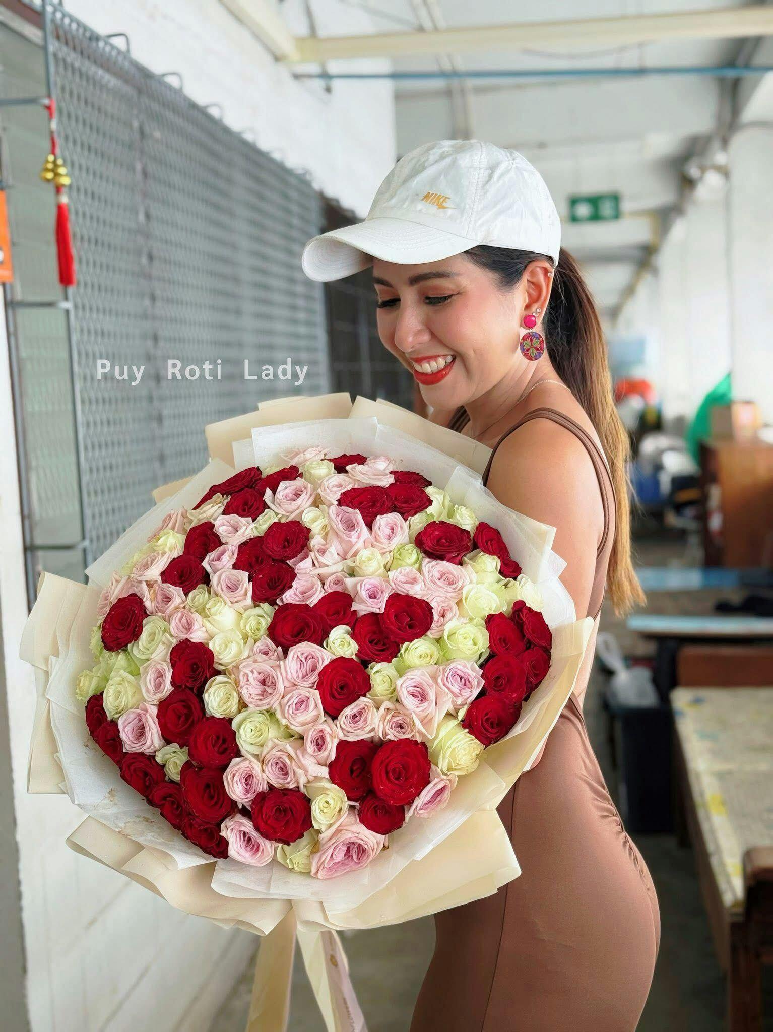 ช่อดอกกุหลาบหลากสี ช่อดอกกุหลาบสีแดง สีชมพู และสีขาว 100 ดอก