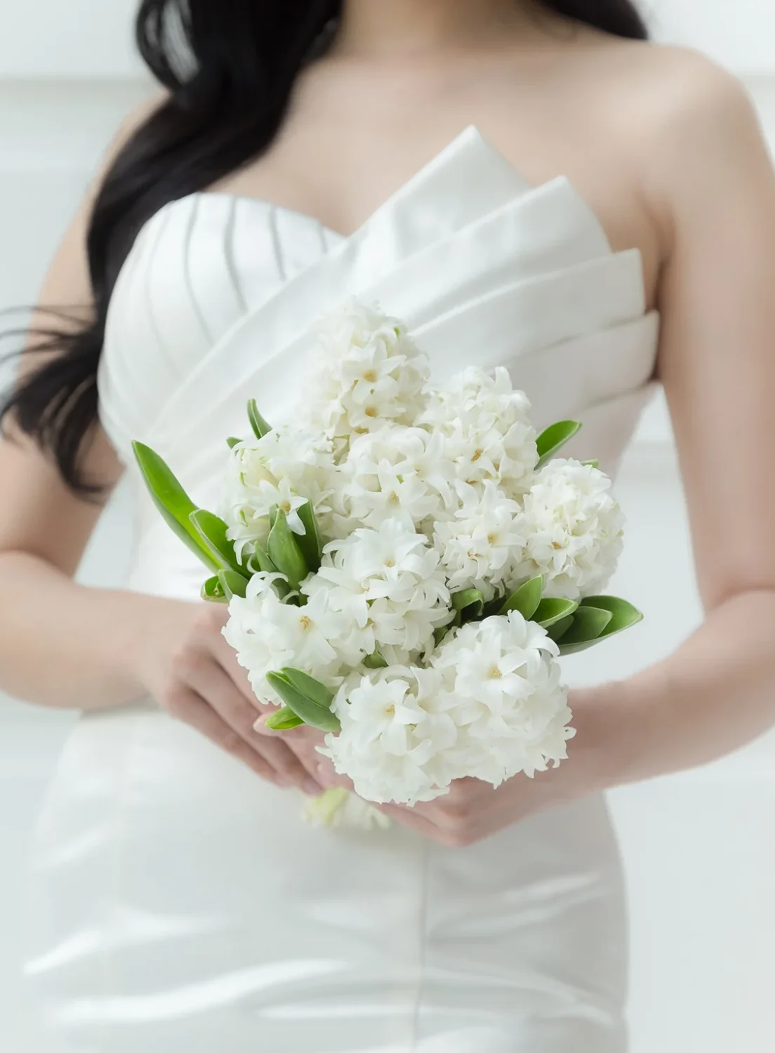 The Coral คือช่อดอกไม้เจ้าสาวที่สะท้อนความงามอันเรียบง่ายแต่ลึกซึ้ง จัดด้วยดอกไฮยาซินธ์สีขาวล้วน ซึ่งเปล่งกลิ่นหอมละมุนและสื่อถึงความบริสุทธิ์ ความจริงใจ และความสง่างามในแบบมินิมอล เหมาะสำหรับเจ้าสาวที่ชื่นชอบความเรียบหรูอย่างมีรสนิยม